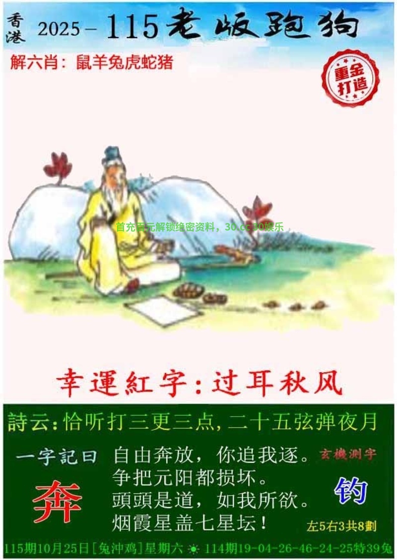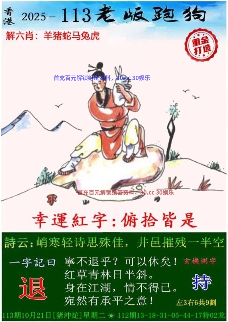 | 108期:绝杀③肖【兔鼠马】特开:猪07准 |
