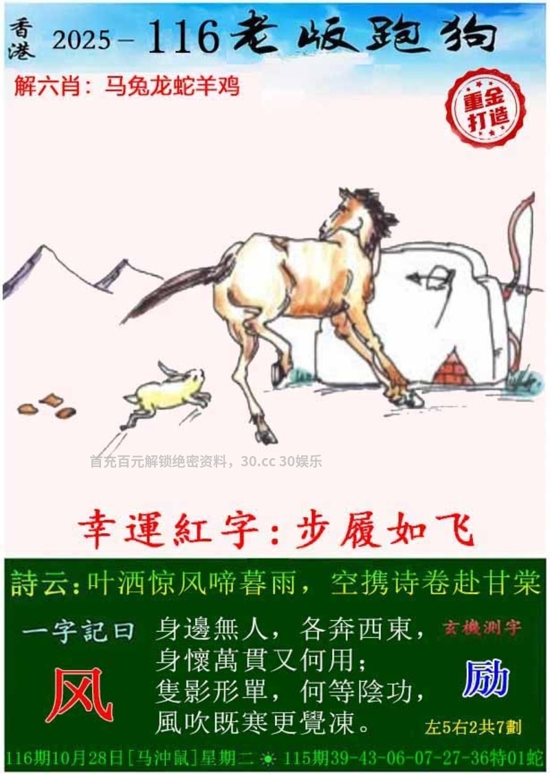 | 116期:绝杀③肖【鼠兔羊】特开:马24准 |